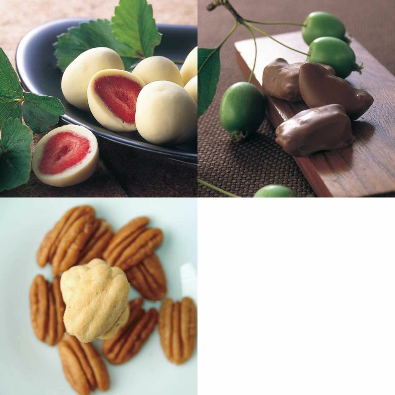 イチゴのチョコレート 角箱とリンゴのチョコレート 角箱とピーカンナッツチョコレート 角箱の【角箱3箱セット】