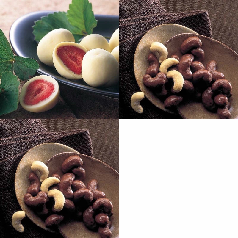 イチゴのチョコレート 化粧箱とカシューナッツチョコレート 角箱とカシューナッツチョコレート 角箱の【角箱2箱・化粧箱1箱セット】