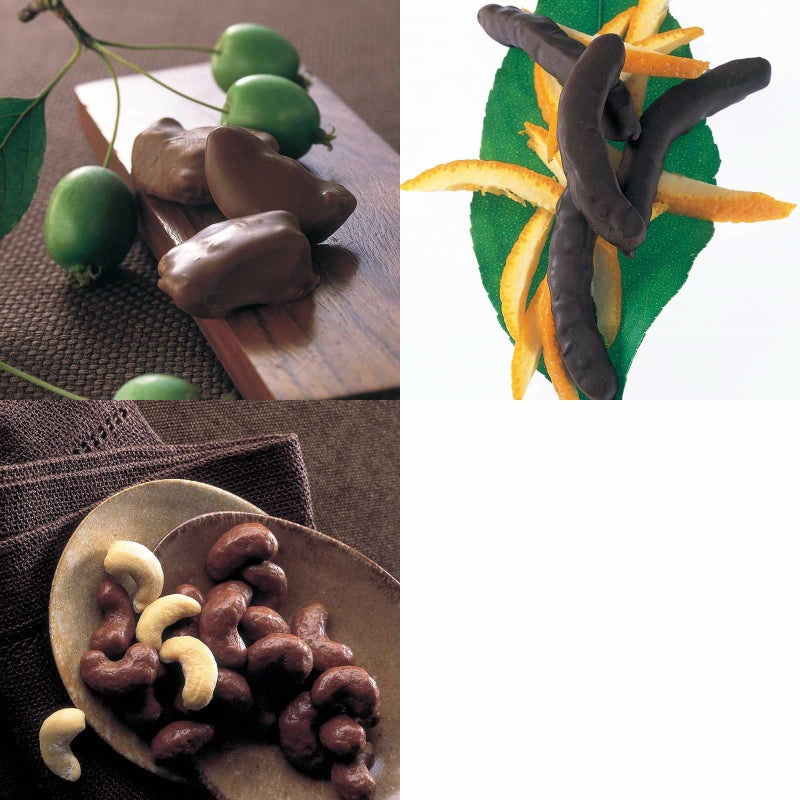 リンゴのチョコレート 角箱とオレンジピールチョコレート 角箱とカシューナッツチョコレート 化粧箱の【角箱2箱・化粧箱1箱セット】