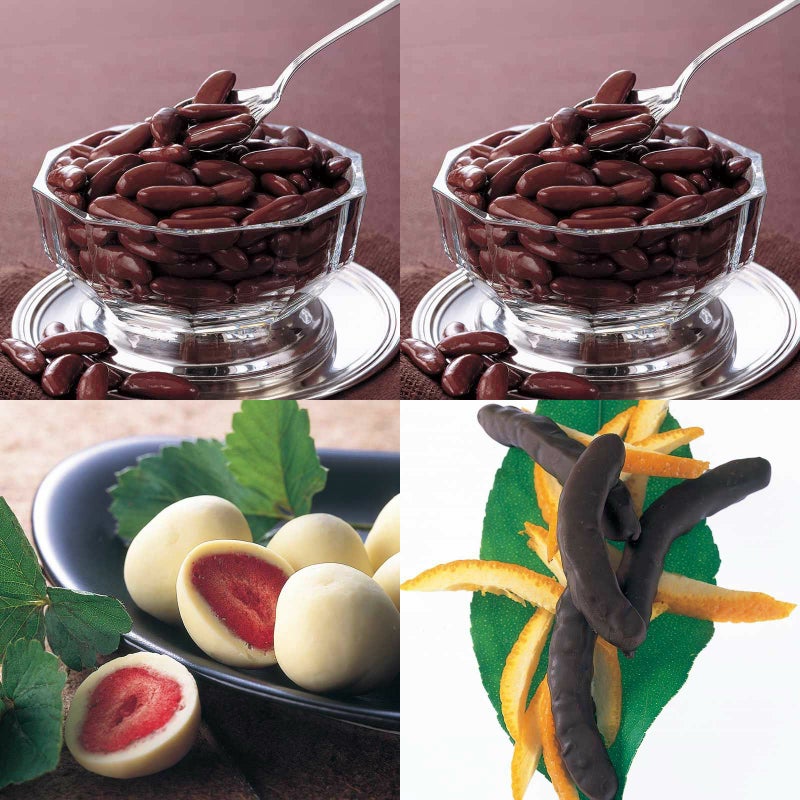 3. 柿の種チョコ マミング 化粧箱と柿の種チョコ マミング 化粧箱とイチゴのチョコレート 角箱とオレンジピールチョコレート 角箱の【角箱2箱・化粧箱2箱セット】