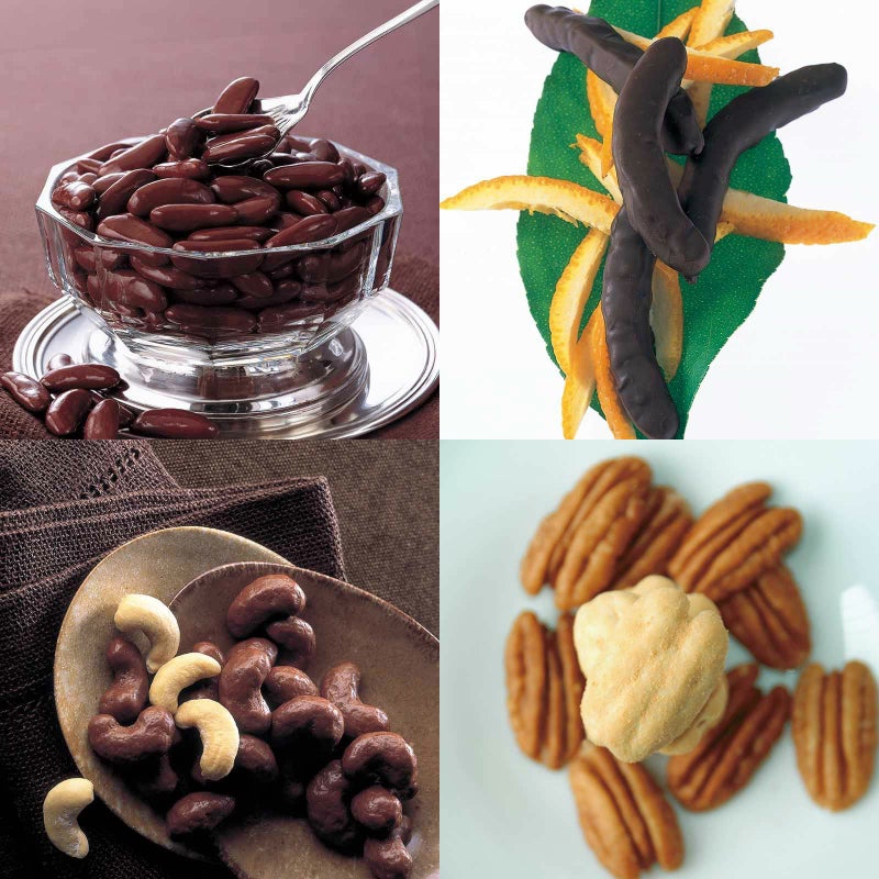 柿の種チョコ マミング 化粧箱とオレンジピールチョコレート 角箱とカシューナッツチョコレート 化粧箱とピーカンナッツチョコレート 角箱の【角箱2箱・化粧箱2箱セット】