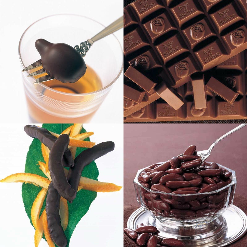 ウイスキーボンボン 化粧箱とプチ・ローズオブシャロン 化粧箱とオレンジピールチョコレート 角箱と柿の種チョコ マミング 角箱の【角箱2箱・化粧箱2箱セット】