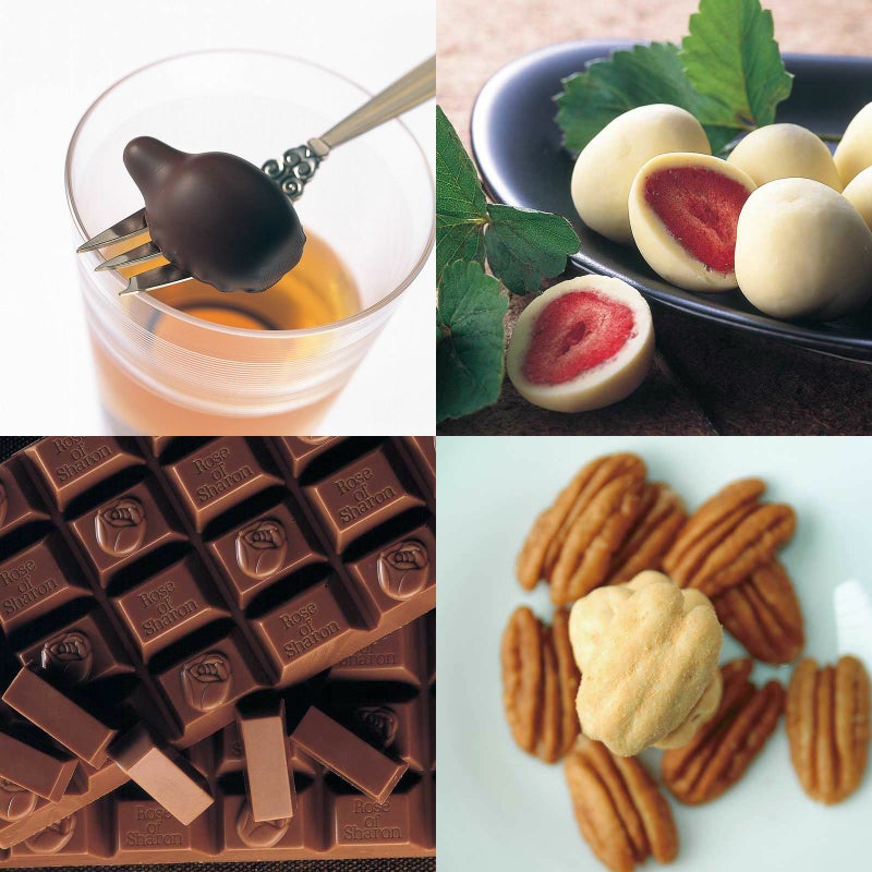 ウイスキーボンボン 化粧箱とイチゴのチョコレート 角箱とプチ・ローズオブシャロン 角箱とピーカンナッツチョコレート 化粧箱の【角箱2箱・化粧箱2箱セット】