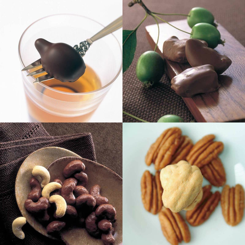 ウイスキーボンボン 化粧箱とリンゴのチョコレート 角箱とカシューナッツチョコレート 角箱とピーカンナッツチョコレート 化粧箱の【角箱2箱・化粧箱2箱セット】