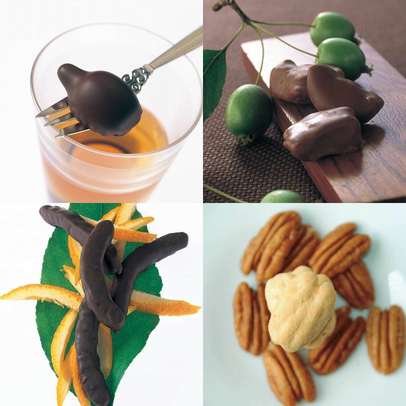 ウイスキーボンボン 化粧箱とリンゴのチョコレート 化粧箱とオレンジピールチョコレート 角箱とピーカンナッツチョコレート 角箱の【角箱2箱・化粧箱2箱セット】