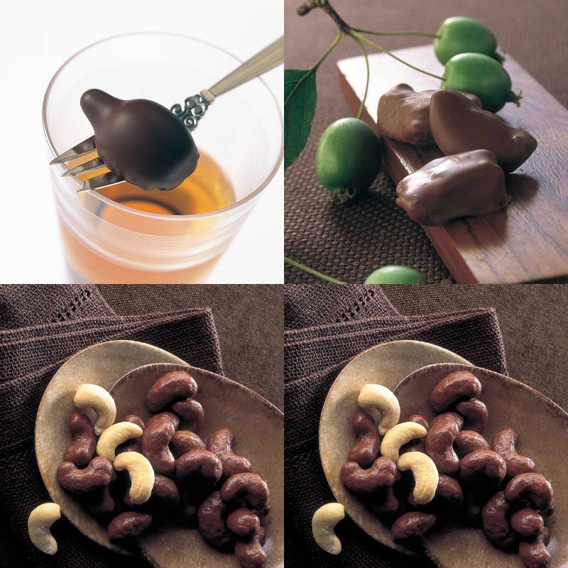 3. ウイスキーボンボン 化粧箱とリンゴのチョコレート 化粧箱とカシューナッツチョコレート 角箱とカシューナッツチョコレート 角箱の【角箱2箱・化粧箱2箱セット】