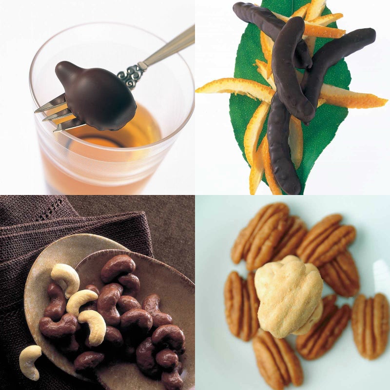 ウイスキーボンボン 化粧箱とオレンジピールチョコレート 角箱とカシューナッツチョコレート 化粧箱とピーカンナッツチョコレート 角箱の【角箱2箱・化粧箱2箱セット】