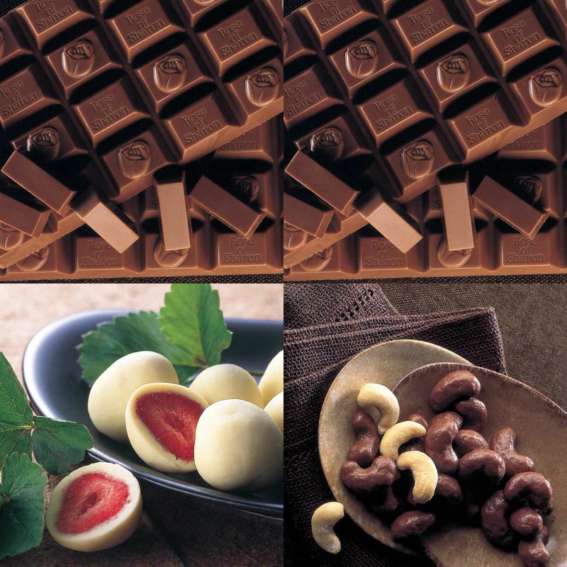 プチ・ローズオブシャロン 化粧箱とプチ・ローズオブシャロン 化粧箱とイチゴのチョコレート 角箱とカシューナッツチョコレート 角箱の【角箱2箱・化粧箱2箱セット】