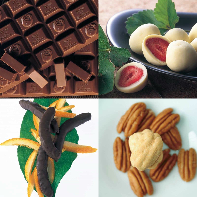 プチ・ローズオブシャロン 化粧箱とイチゴのチョコレート 角箱とオレンジピールチョコレート 角箱とピーカンナッツチョコレート 化粧箱の【角箱2箱・化粧箱2箱セット】
