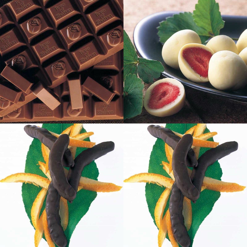 プチ・ローズオブシャロン 化粧箱とイチゴのチョコレート 化粧箱とオレンジピールチョコレート 角箱とオレンジピールチョコレート 角箱の【角箱2箱・化粧箱2箱セット】