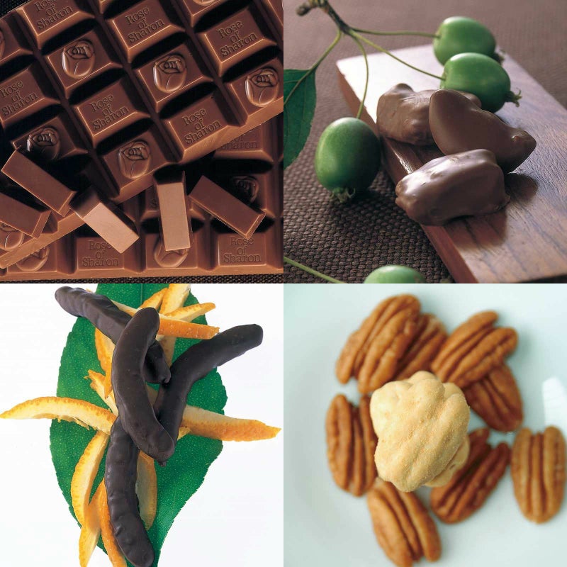 プチ・ローズオブシャロン 化粧箱とリンゴのチョコレート 化粧箱とオレンジピールチョコレート 角箱とピーカンナッツチョコレート 角箱の【角箱2箱・化粧箱2箱セット】