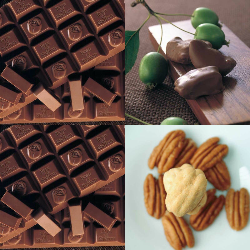 プチ・ローズオブシャロン 化粧箱とリンゴのチョコレート 化粧箱とプチ・ローズオブシャロン 角箱とピーカンナッツチョコレート 角箱の【角箱2箱・化粧箱2箱セット】