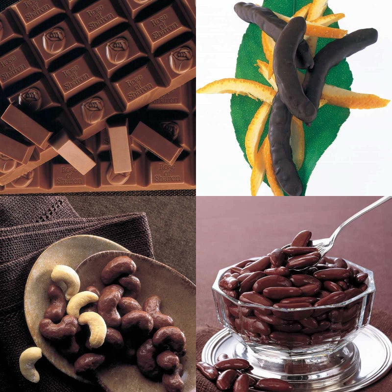 3. プチ・ローズオブシャロン 化粧箱とオレンジピールチョコレート 角箱とカシューナッツチョコレート 化粧箱と柿の種チョコ マミング 角箱の【角箱2箱・化粧箱2箱セット】
