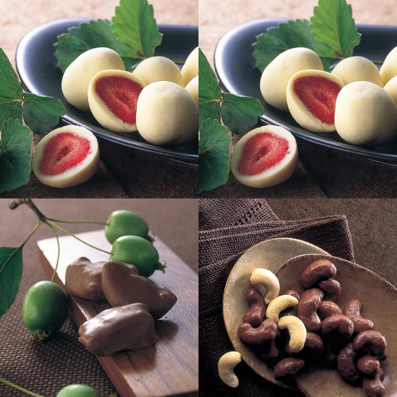 イチゴのチョコレート 角箱とイチゴのチョコレート 化粧箱とリンゴのチョコレート 角箱とカシューナッツチョコレート 化粧箱の【角箱2箱・化粧箱2箱セット】