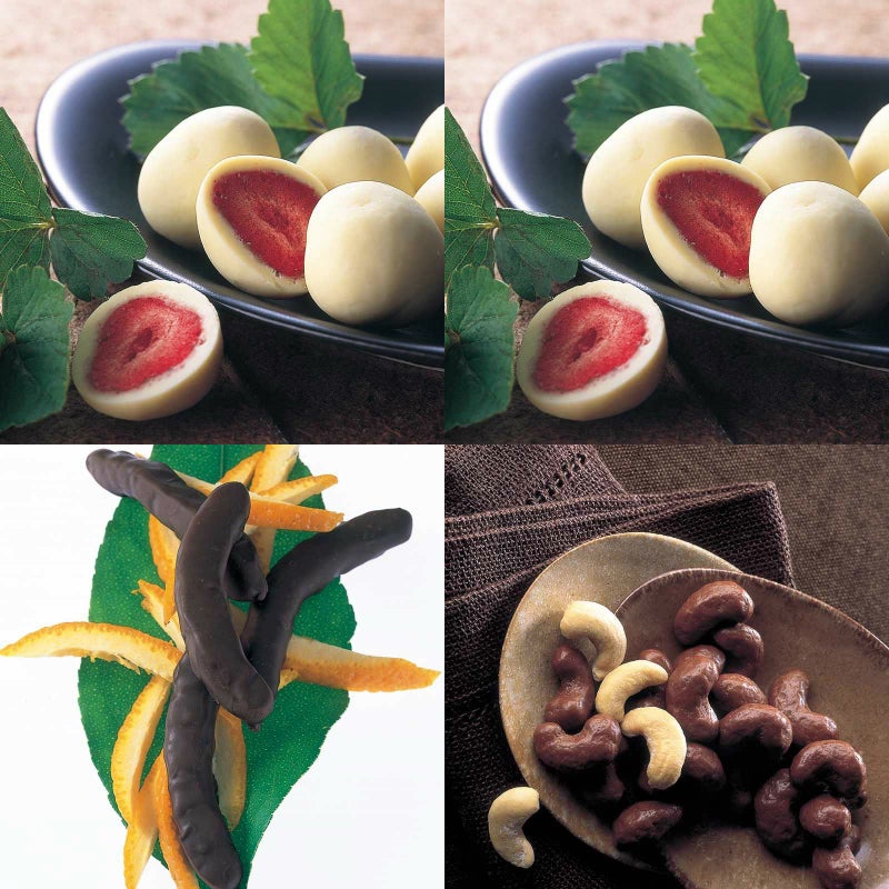 イチゴのチョコレート 角箱とイチゴのチョコレート 化粧箱とオレンジピールチョコレート 角箱とカシューナッツチョコレート 化粧箱の【角箱2箱・化粧箱2箱セット】