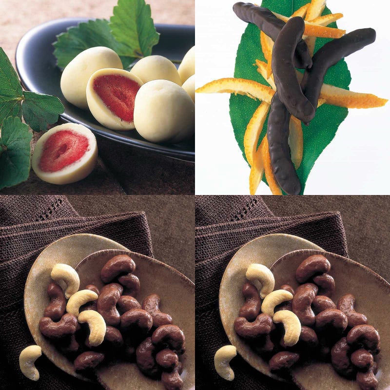 イチゴのチョコレート 角箱とオレンジピールチョコレート 角箱とカシューナッツチョコレート 角箱とカシューナッツチョコレート 角箱の【角箱4箱セット】