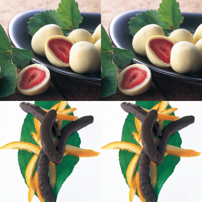 イチゴのチョコレート 化粧箱とイチゴのチョコレート 化粧箱とオレンジピールチョコレート 角箱とオレンジピールチョコレート 角箱の【角箱2箱・化粧箱2箱セット】