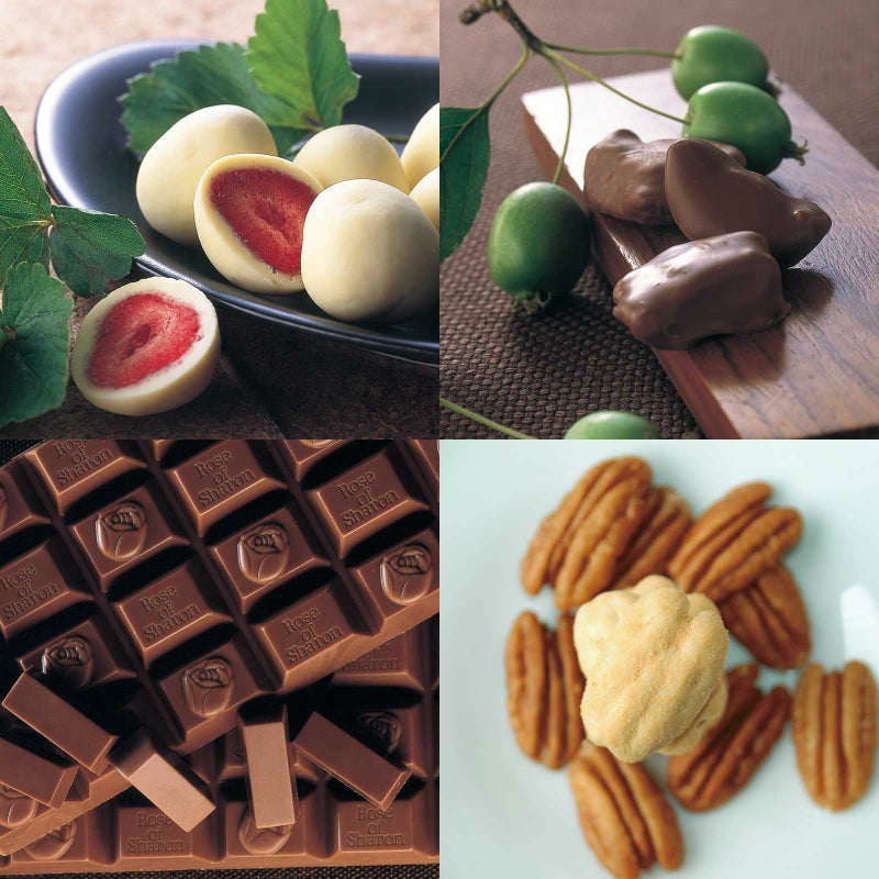 イチゴのチョコレート 化粧箱とリンゴのチョコレート 角箱とプチ・ローズオブシャロン 角箱とピーカンナッツチョコレート 化粧箱の【角箱2箱・化粧箱2箱セット】