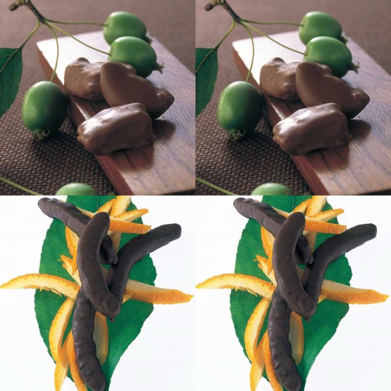 リンゴのチョコレート 化粧箱とリンゴのチョコレート 化粧箱とオレンジピールチョコレート 角箱とオレンジピールチョコレート 角箱の【角箱2箱・化粧箱2箱セット】