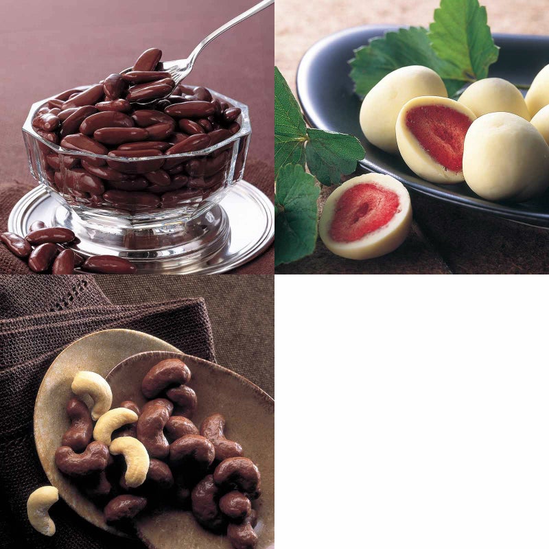 柿の種チョコ マミング 化粧箱とイチゴのチョコレート 角箱とカシューナッツチョコレート 角箱の【角箱2箱・化粧箱1箱セット】