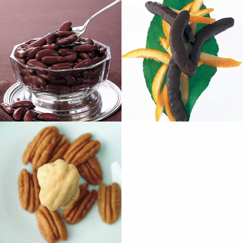 柿の種チョコ マミング 化粧箱とオレンジピールチョコレート 角箱とピーカンナッツチョコレート 角箱の【角箱2箱・化粧箱1箱セット】