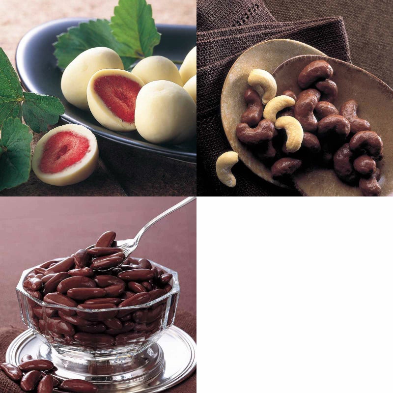 イチゴのチョコレート 角箱とカシューナッツチョコレート 化粧箱と柿の種チョコ マミング 角箱の【角箱2箱・化粧箱1箱セット】