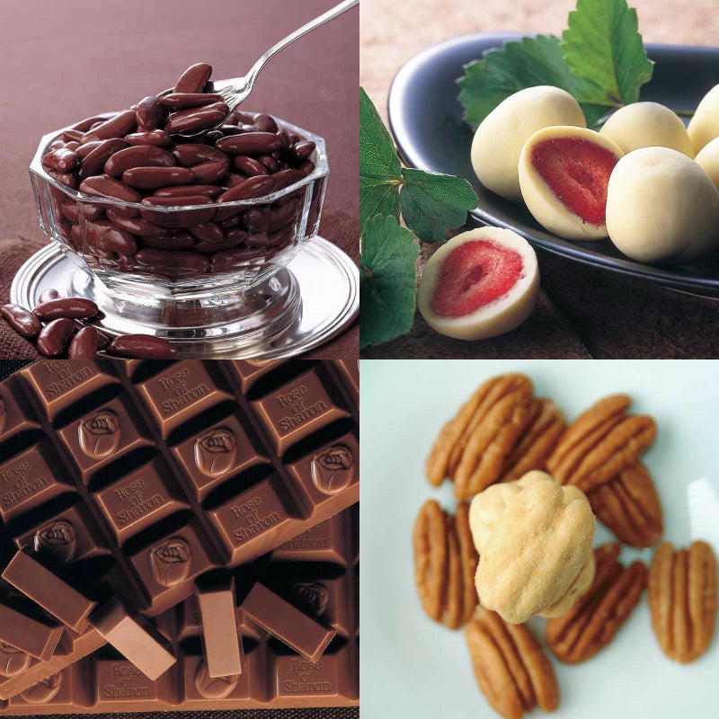 柿の種チョコ マミング 化粧箱とイチゴのチョコレート 角箱とプチ・ローズオブシャロン 角箱とピーカンナッツチョコレート 化粧箱の【角箱2箱・化粧箱2箱セット】
