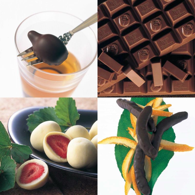 ウイスキーボンボン 化粧箱とプチ・ローズオブシャロン 化粧箱とイチゴのチョコレート 角箱とオレンジピールチョコレート 角箱の【角箱2箱・化粧箱2箱セット】