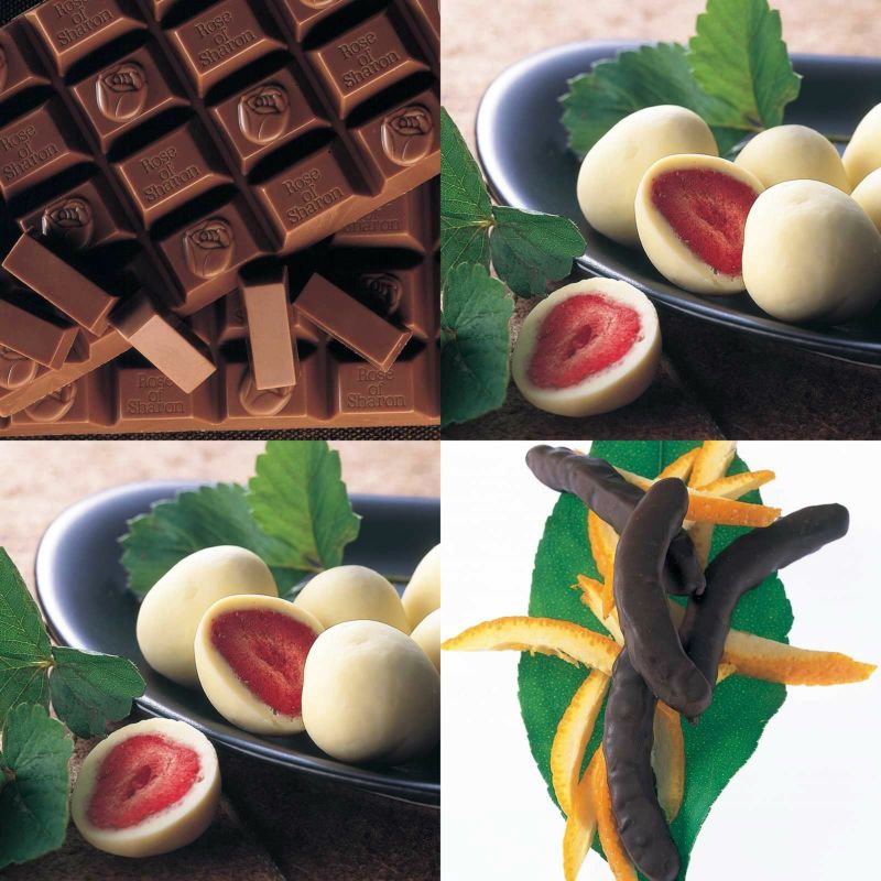 プチ・ローズオブシャロン 化粧箱とイチゴのチョコレート 角箱とイチゴのチョコレート 化粧箱とオレンジピールチョコレート 角箱の【角箱2箱・化粧箱2箱セット】