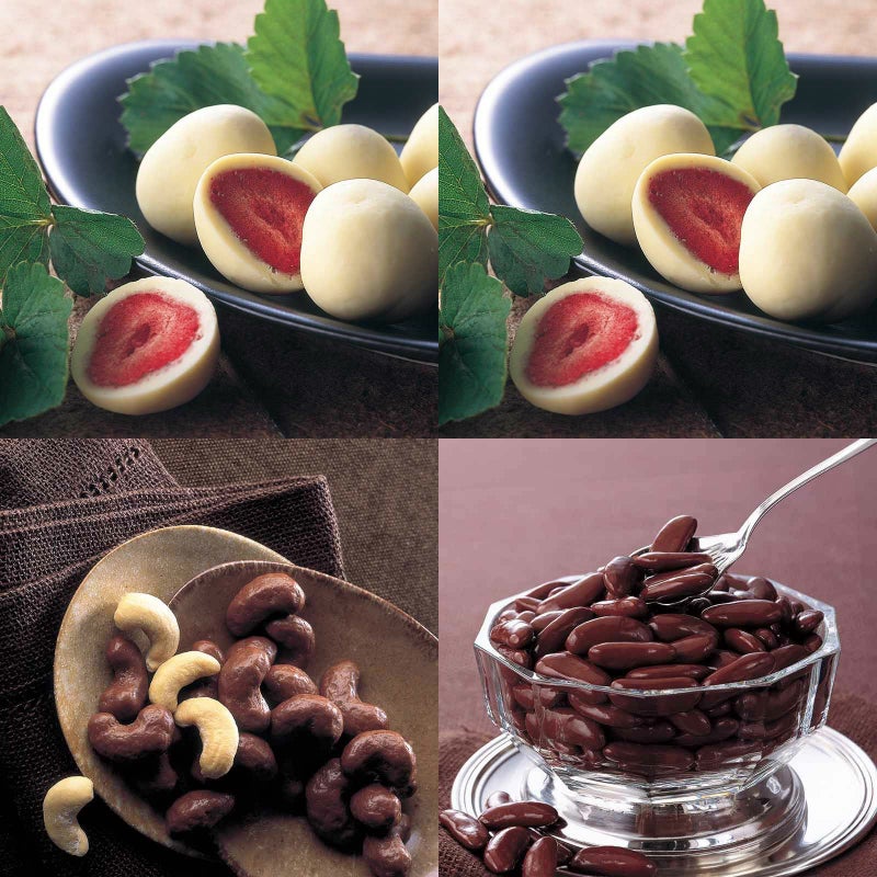 イチゴのチョコレート 化粧箱とイチゴのチョコレート 化粧箱とカシューナッツチョコレート 角箱と柿の種チョコ マミング 角箱の【角箱2箱・化粧箱2箱セット】
