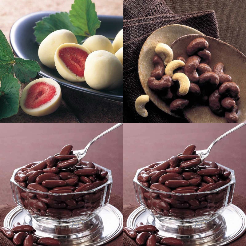 イチゴのチョコレート 化粧箱とカシューナッツチョコレート 化粧箱と柿の種チョコ マミング 角箱と柿の種チョコ マミング 角箱の【角箱2箱・化粧箱2箱セット】