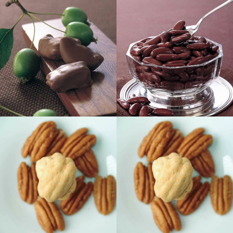 リンゴのチョコレート 角箱と柿の種チョコ マミング 角箱とピーカンナッツチョコレート 化粧箱とピーカンナッツチョコレート 化粧箱の【角箱2箱・化粧箱2箱セット】