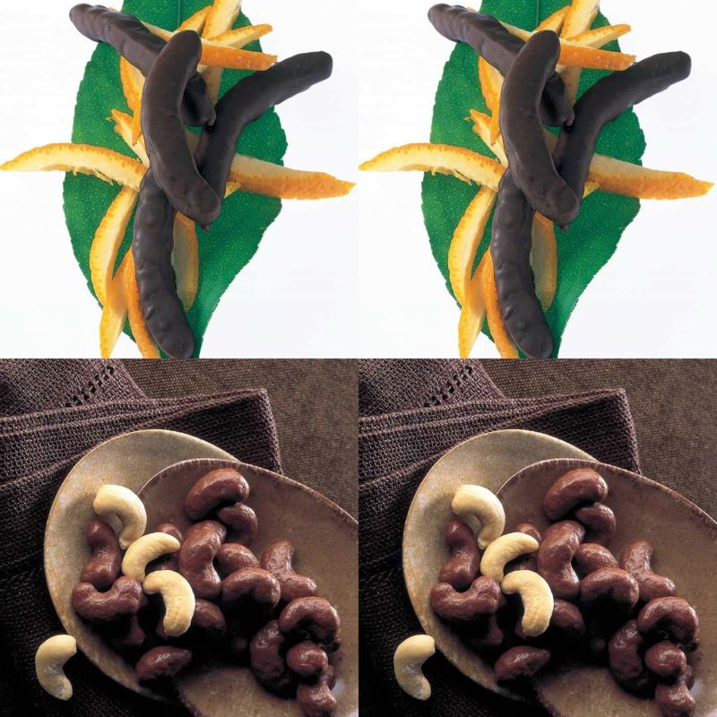 オレンジピールチョコレート 角箱とオレンジピールチョコレート 角箱とカシューナッツチョコレート 化粧箱とカシューナッツチョコレート 化粧箱の【角箱2箱・化粧箱2箱セット】