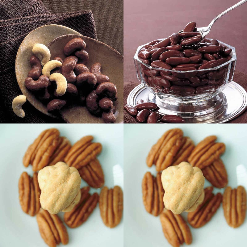 カシューナッツチョコレート 化粧箱と柿の種チョコ マミング 角箱とピーカンナッツチョコレート 角箱とピーカンナッツチョコレート 化粧箱の【角箱2箱・化粧箱2箱セット】
