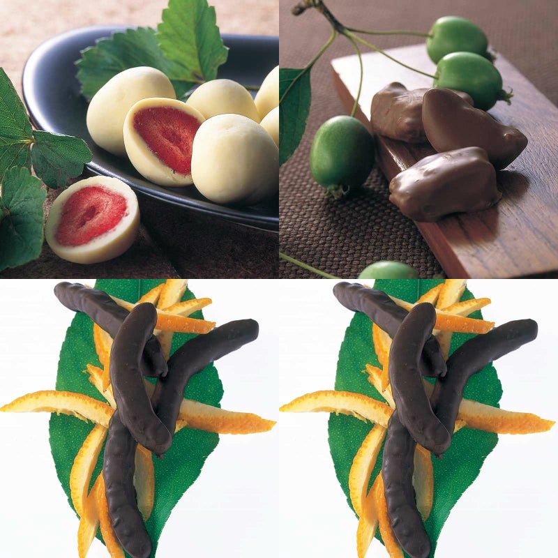 イチゴのチョコレート 角箱とリンゴのチョコレート 角箱とオレンジピールチョコレート 角箱とオレンジピールチョコレート 角箱の【角箱4箱セット】