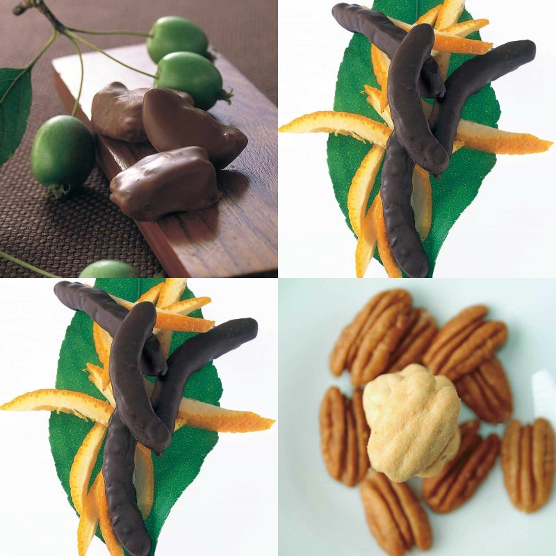 リンゴのチョコレート 角箱とオレンジピールチョコレート 角箱とオレンジピールチョコレート 角箱とピーカンナッツチョコレート 角箱の【角箱4箱セット】