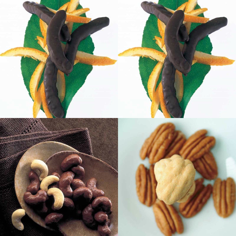 オレンジピールチョコレート 角箱とオレンジピールチョコレート 角箱とカシューナッツチョコレート 角箱とピーカンナッツチョコレート 角箱の【角箱4箱セット】