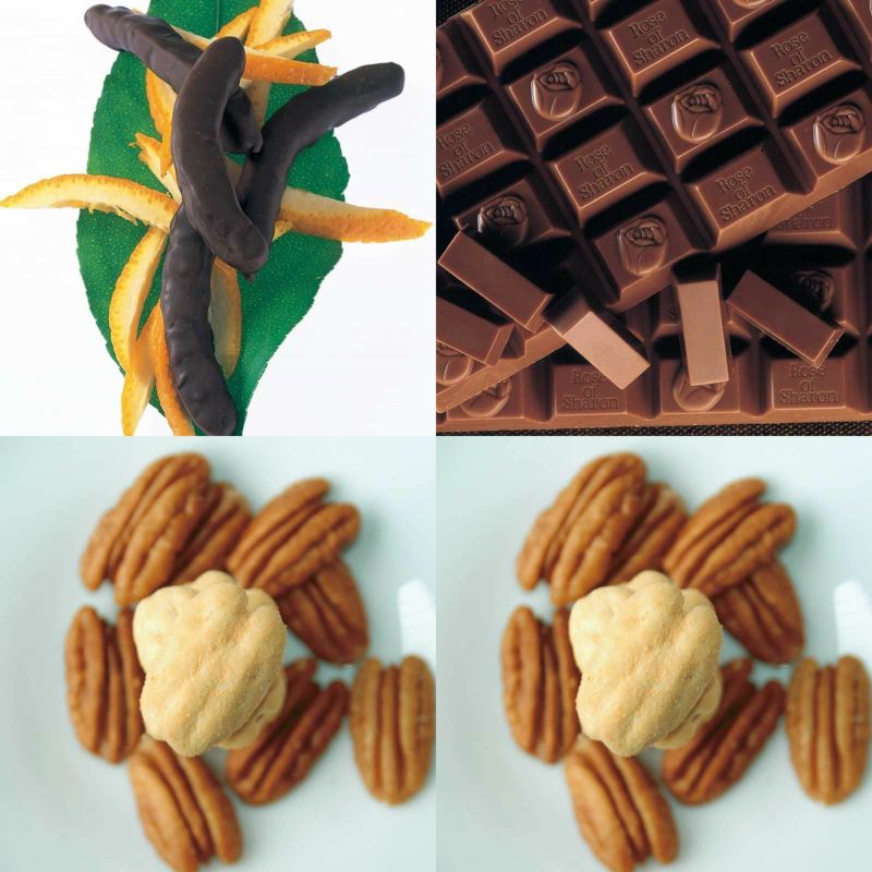オレンジピールチョコレート 角箱とプチ・ローズオブシャロン 角箱とピーカンナッツチョコレート 角箱とピーカンナッツチョコレート 角箱の【角箱4箱セット】
